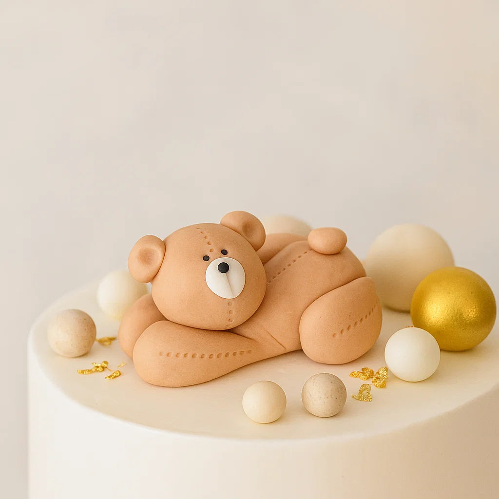 Det enklaste sättet att ge ditt bakverk en extra tjusig finish är att köpa färdiga tårtdekorationer! Här hittar du en väldigt enkel men effektfull figur i form av en söt liten nallebjörn. Denna liggande nalle är brun med detaljer i vitt och svart, och är givetvis fullt ätbar.