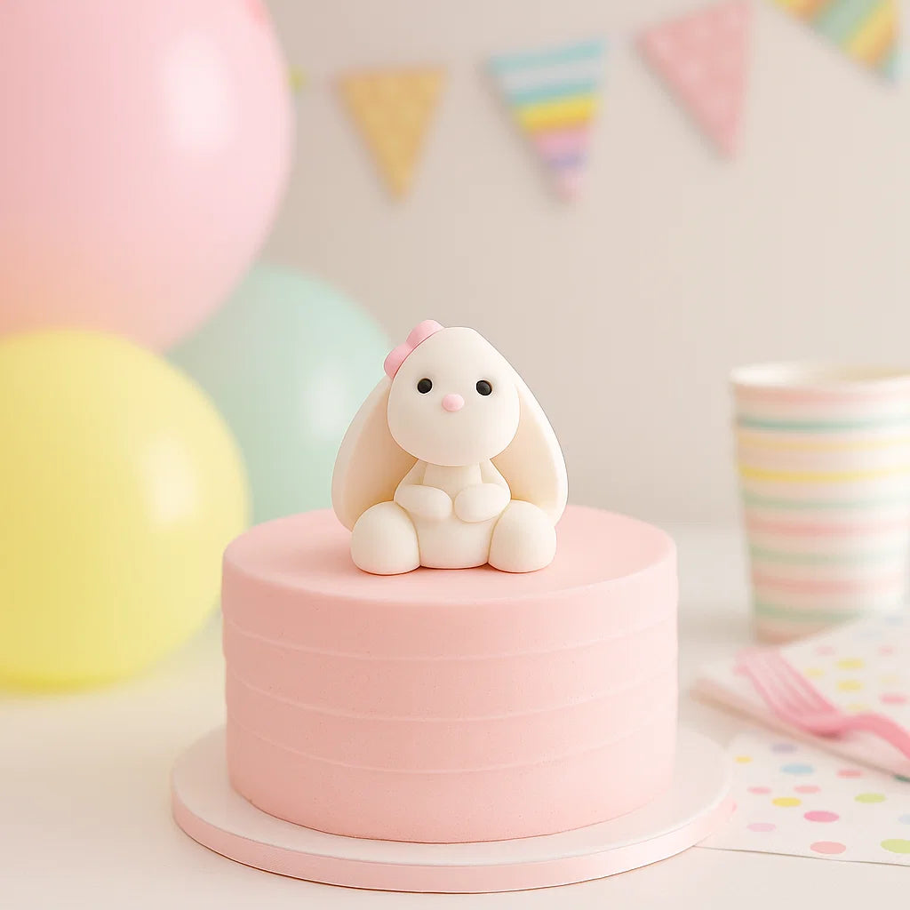 En liten kanin kan göra underverk på en tårta! Denna söta sockerpastafigur i form av en vit kanin med rosa rosett är den perfekta dekorationen för babyshower, dop eller födelsedagskalas. Med sina mjuka detaljer och gulliga uttryck förvandlar den vilken tårta som helst till en sagolik skapelse. Placera den på en prinsesstårta, en barntårta eller som en del av ett större dekorationstema – kaninen blir alltid en blickfångare. Den är ätbar, men många sparar den gärna som ett minne efter firandet.