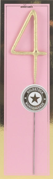 Siffran 4 bär på en vacker känsla av balans – som fyra små hörn av trygghet, glädje och firande. I detta gyllene sifferbloss får den stråla ännu klarare, med en skimrande yta som gör varje festlig stund lite mer magisk. Formen är tidlös, ren och elegant, och när den tänds väcks hela firandet till liv i ett sprakande sken.