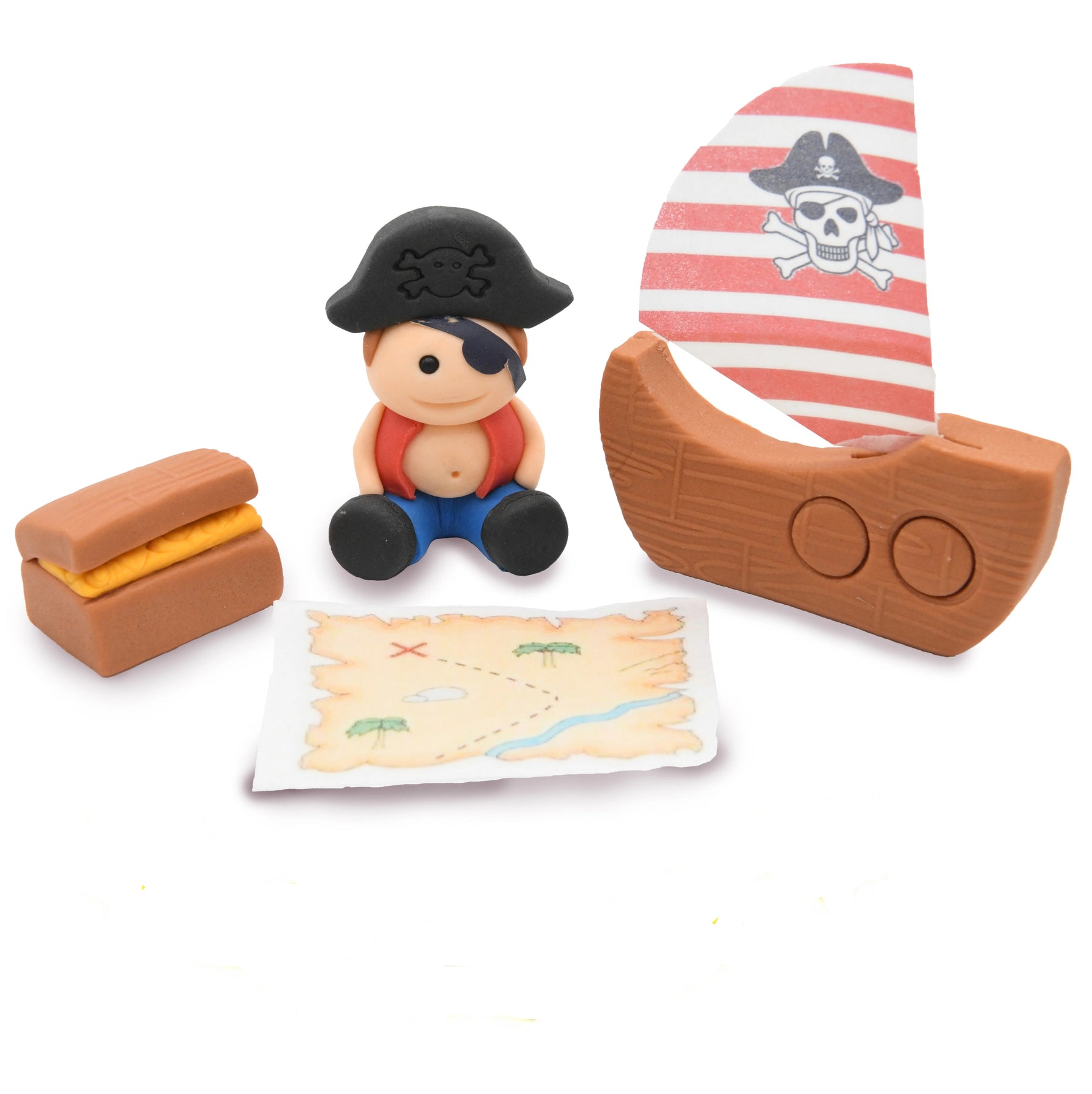 ✔ Ätbart set med pirat, skepp, skattkista och karta