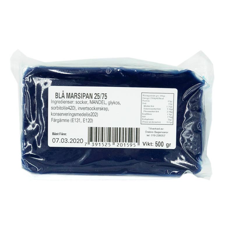 Låt din tårta lysa upp med en djup, blå nyans! Denna högkvalitativa marsipan från Örebro Bagerivaror är en dröm att arbeta med – mjuk, följsam och perfekt för att täcka tårtor, baka prinsesstårtor eller skapa vackra dekorationer som rosor, blad och figurer. Marsipanen ger en balanserad smak där mandeln bidrar med härlig karaktär, medan sötman ger den klassiska marsipankänslan. Färgen är intensiv och jämn, vilket gör att dina kreationer blir lika vackra som de är goda.