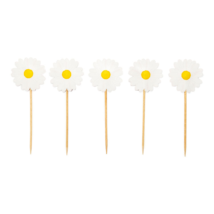 Sommarens enklaste och vackraste blomma får nu pryda dina bakverk. Dessa cupcake toppers i form av vita tusenskönor med solgult centrum skapar en lantlig, romantisk och lättsam känsla på dessertbordet. Perfekta till midsommar, trädgårdsfest, dop, baby shower eller när du vill bjuda på fika med en extra dos blomsterlycka.