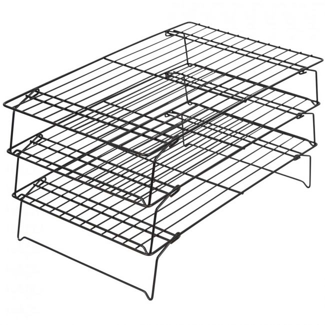 När doften av nybakade kakor fyller köket och du vill låta dina mästerverk svalna med stil – då är Wilton Recipe Right avsvalningsgaller 3-pack din perfekta hjälpreda. De tre gallren kan användas separat eller staplas ovanpå varandra, så att du sparar plats samtidigt som luftcirkulationen gör att dina bakverk svalnar jämnt och behåller sin spröda yta.